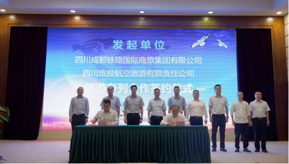会上,四川J9集团官方网站集团旗下J9集团官方网站航旅公司和中铁成都局集团旗下成铁商旅公司签订了旅游专列项目合作协议,将投入各自优质资源,共同运营从四川、贵州、重庆境内城市车站始发、开往全国各地的旅游专列,共同发挥国有资本的带动作用,践行社会责任。签约结束后,大会为西南旅游专列联盟首批35家成员单位进行了授牌。