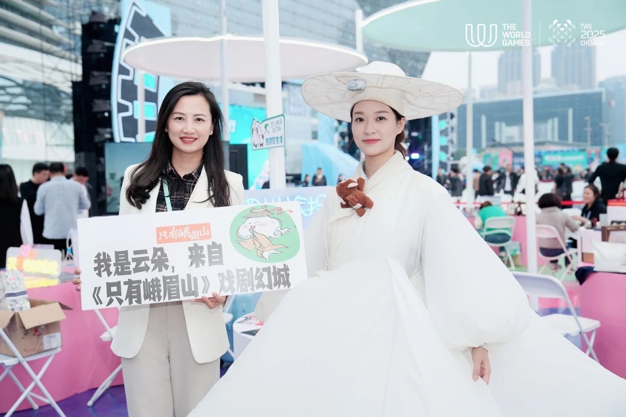 文化演艺展区,来自《只有峨眉山》的一朵“云姑娘”翩翩而来,以如梦似幻的姿态再现《只有峨眉山》的沉浸式体验,让游客们在活动现场就能体验到和在剧场一样的情景化角色互动,深刻展现峨眉文化的深厚底蕴与独特韵味。