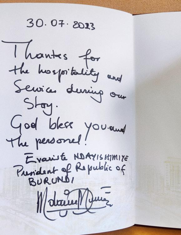 成都大运会期间,集团旗下多家酒店积极响应号召,抽调骨干员工,为大运会相关服务保障工作进行全力支援,齐心协力做好“保驾护航”,赢得来川领导和国际嘉宾以及省领导的充分肯定,为本次系列服务保障任务提交了一份完美答卷。安逸酒店集团旗下锦江宾馆、金牛宾馆、委管项目成都天府新城会议中心、花园宾馆、川粮宾馆分别收到来自布隆迪总统恩达伊施米耶、四川省公务服务中心、成都市博览局、第31届大运会执委会接待工作专班、中国人民武装警察部队成都支队保障部、第31届大运会运动员村村委会的感谢信。信中高度评价酒店全体员工在服务保障工作中所展现出的专业素养和卓越表现,并对酒店优质高效完成服务保障工作表示感谢。